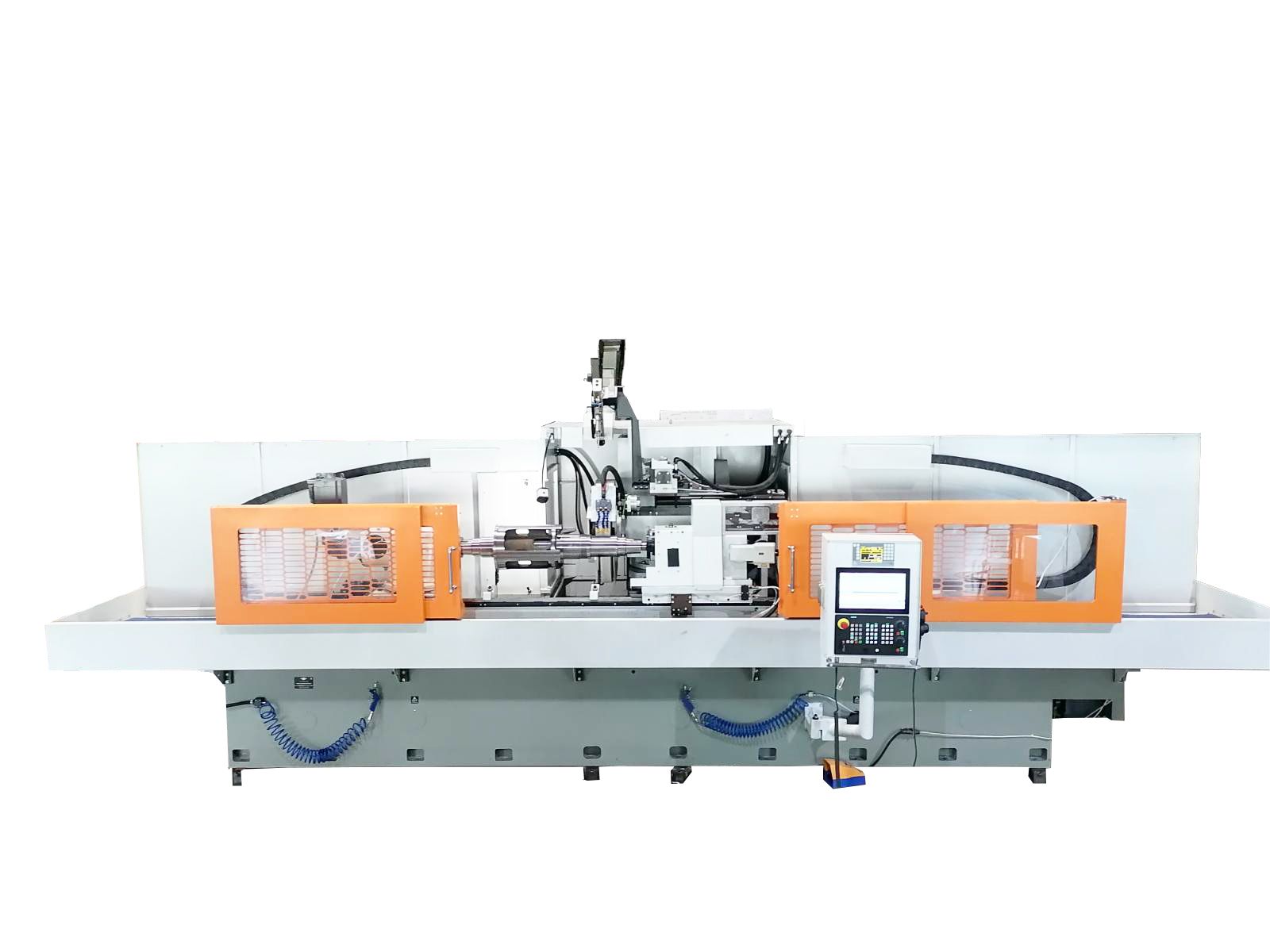 Слева станины устанавливается система подачи и очистки СОЖ, сзади - гидростанция, сзади справа электрошкаф, а спереди пульт управления с системой ЧПУ.