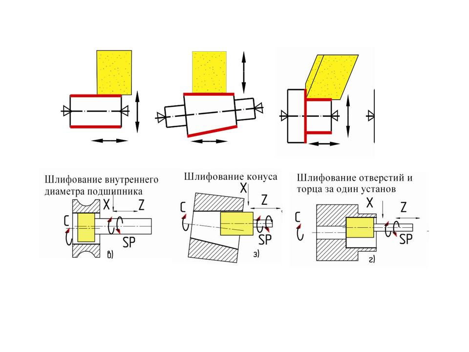 -вращение шлифовального круга внутришлифовального шпинделя (Sp3);